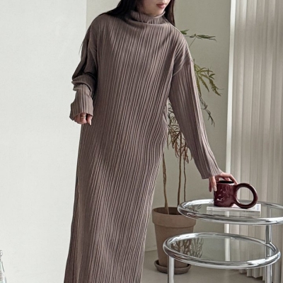 lu.하이넥주름롱원피스