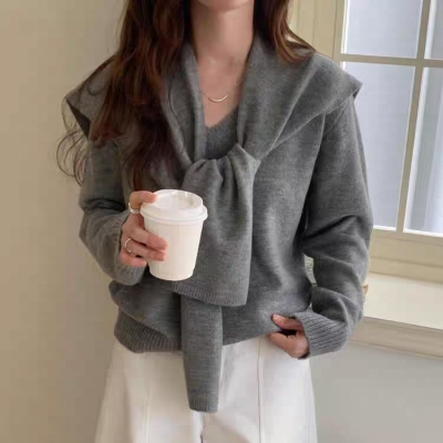 on.[NT682]브이넥니트숄세트