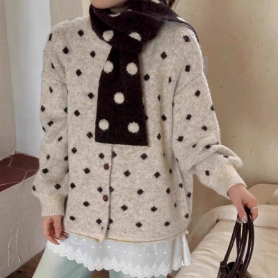 on.[CD587]도트가디건목도리세트