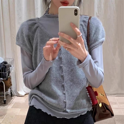 on.[CD613]앙고라셔링반팔가디건