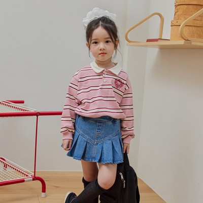 도레도레.자수카라티셔츠(핑크)