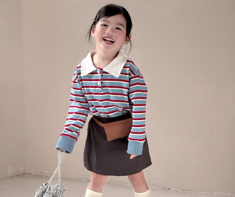 [수입]모던블루폴스커트셋